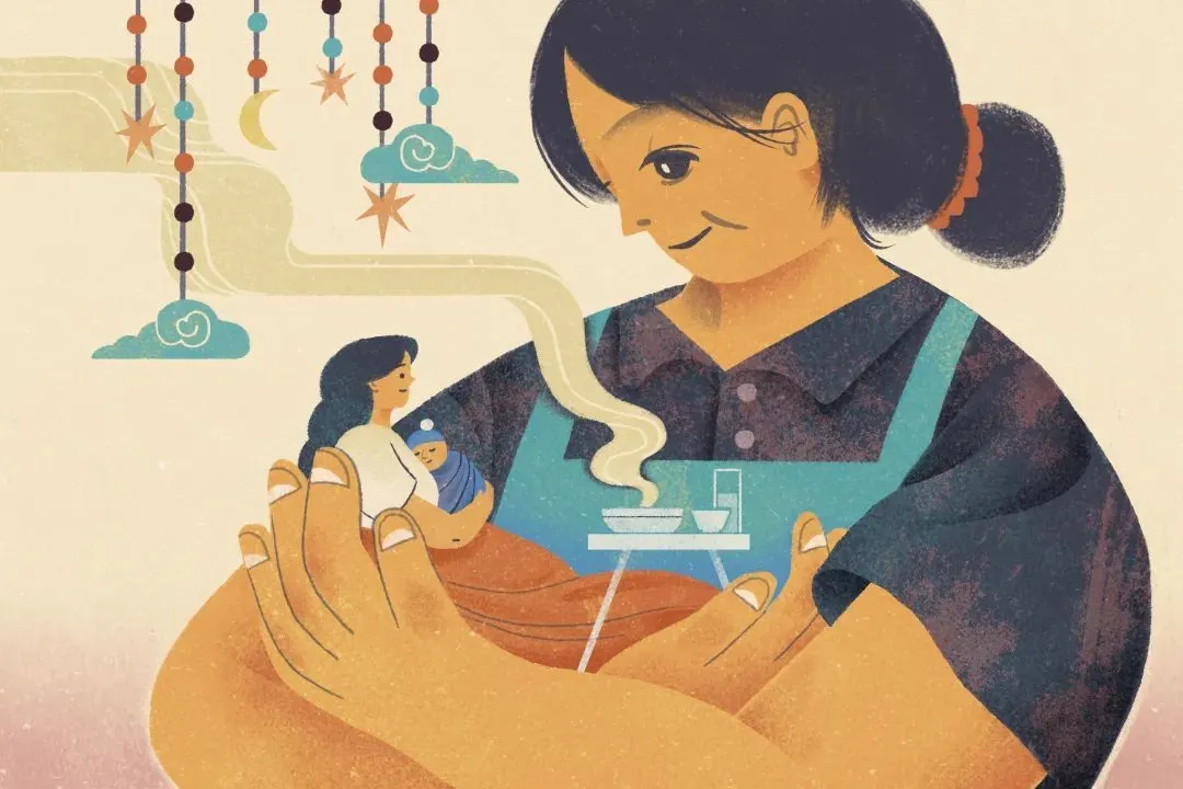 而月嫂的幫助疏減了她的壓力。月嫂會加熱冷藏的母乳給嬰兒餵奶,幫着換尿布和安撫寶寶,還為全家準備飯菜。