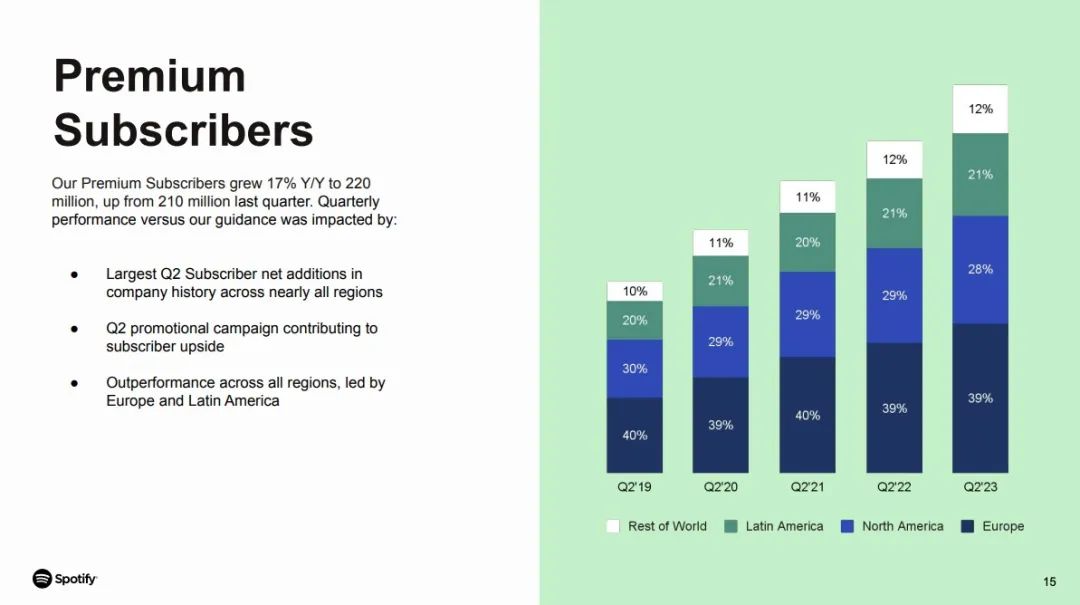 最近,基於廣告業務毛利率處於虧損狀態,甚至都有外媒開始分析Spotify實行全面付費的可能性。畢竟,除了現有的2.2億付費用户,只需要完成3.43億廣告支持用户中至多29%、至少18.5%的付費轉化率,就足以填補取消免費帶來的損失。