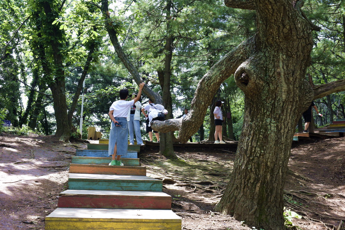 上上下下,震耳欲聾的轟隆隆的汽車發動機聲,和清澈的汽車鳴笛聲迴盪山谷,經過約20分鐘讓人心驚肉跳的陡峭山路盤旋,終於到達山頂中一停車場,下車後,需自己一步一步沿着陡峭的石台階向上攀登,到達山頂,回想乘車,讓人慶幸的是多虧乘車前服了降血壓藥。