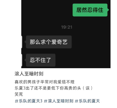 大家嘴上調侃着「音樂節四五百説衝就衝,愛奇藝會員誰能借我一下」,實則心中過大年,滿屏都洋溢着「我要看樂夏」的熱情。