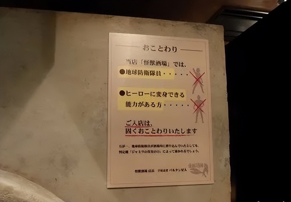通常會有穿着皮套的怪獸迎客,進門前還會有店員告知,地球防衞隊員或者能變身成為奧特曼的人禁止入店,然後把手放上面驗證一下就能進店。