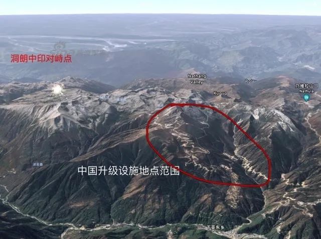▲這張地圖更為直觀——下方是春丕河谷,爭議區、對峙點主要在山上