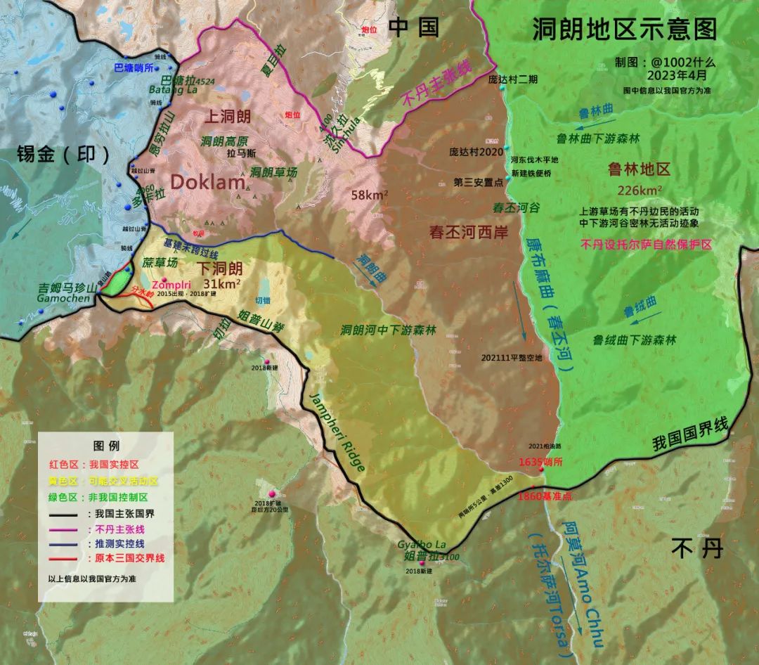 根據當時劃定的邊界,錫金和西藏邊界的起點是“不丹邊境的吉姆馬珍山(Gipmochi)”,這座山位於洞朗的南邊,我們國家對洞朗地區的主張正是來源於這個條約。