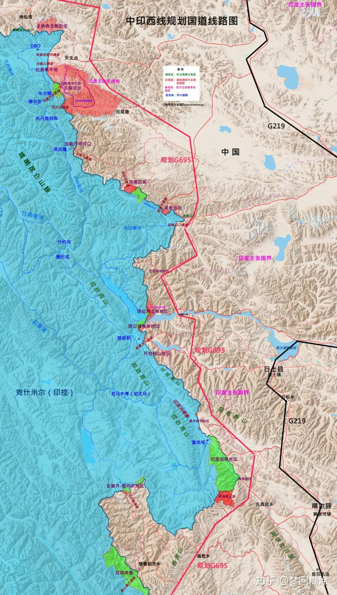 ▲規劃中的G695現在已經分段建好不少了,我在中印邊境西線考察的時候走過其中幾段