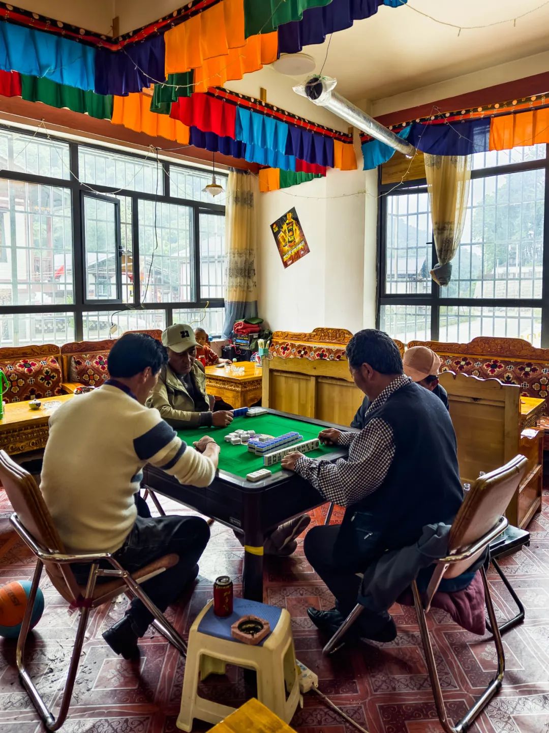 我們的工程隊轟轟烈烈地開了進來,不但在極短的時間內修通了公路,還建起了相鄰的三組龐達新村、銀河瀑布景區、蔬菜大棚、鮭魚養殖基地等一系列配套產業設施……這裏的村民是從海拔4630米的亞東縣堆納鄉自願搬遷過來的——這是真的自願,換了我也想來這裏住。宜人的氣候、依山傍水的環境、政府提供的大別墅、每年還能領各種補貼……我在村子裏轉了轉,各種歌舞昇平歲月靜好,年輕人去縣城打工,老年人就聚在一起喝酒喝茶打麻將,小孩兒可以放在村裏的幼兒園,不但做到了“老有所養”,還解決了幼兒托育問題。