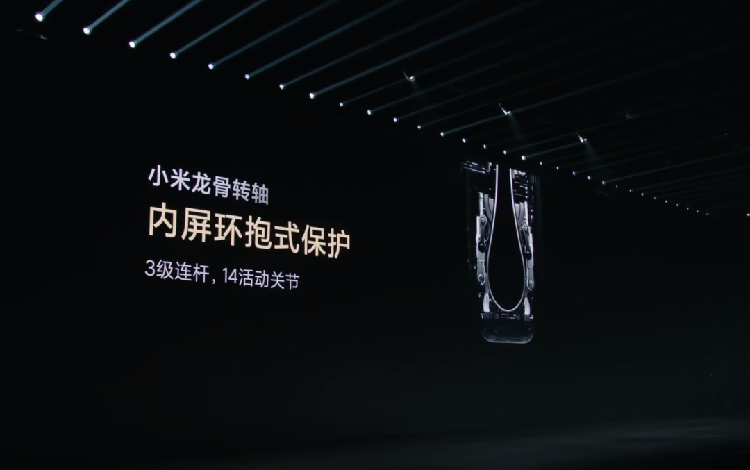 根據小米的説法,相比上代的微型水滴轉軸,龍骨轉軸在展開狀態下厚度從 3.0mm 降低到 2.7mm ,摺疊狀態下厚度從 8.8mm 減到 7.7mm ,而且寬度也減少了 8% ,最終實現內部空間再釋放 17% 。
