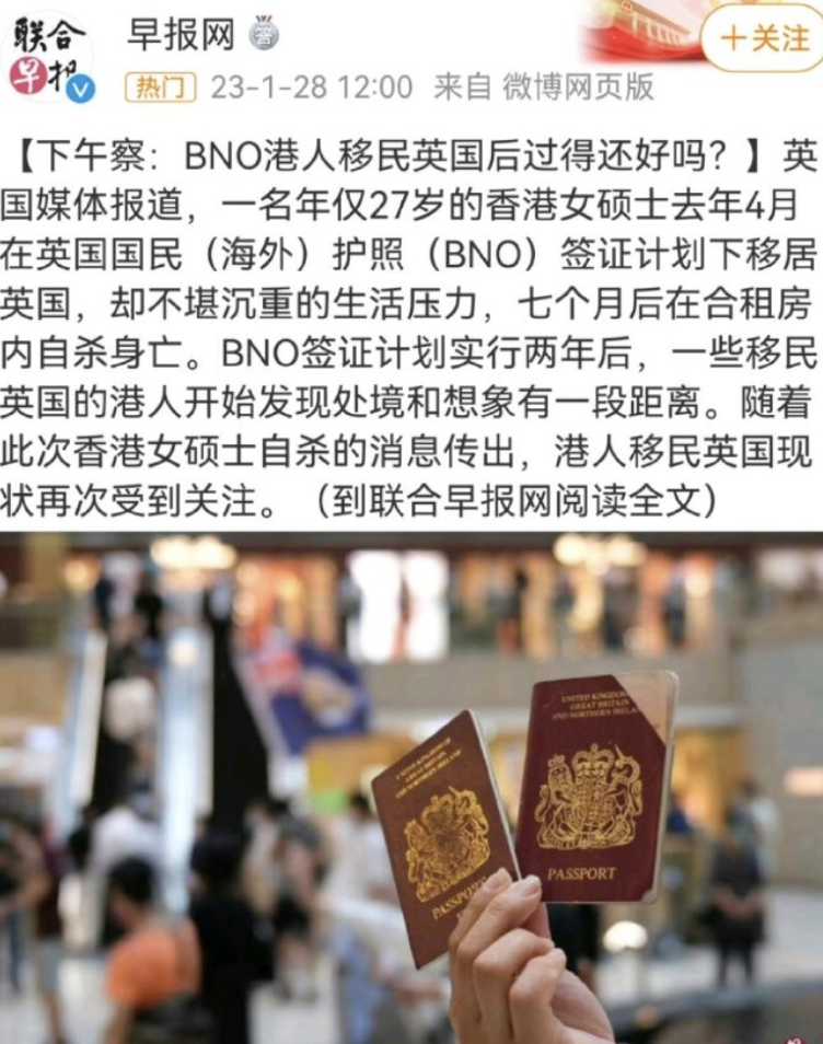 最近,有一則新聞説一名27歲香港女碩士在移民到英國後,因為無法應付高昂生活開支,疑似壓力過大導致患上心理疾病,自殺身亡。但仔細一看,她是在2022年,獲得了BNO簽證後,才移民英國的……回想一下,拿到BNO簽證移民英國的,都是什麼人?