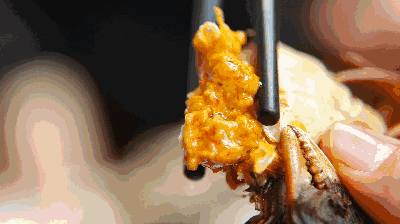 拆蟹粉的最高境界,當然要數禿黃油。禿黃油中的“禿”,其實不是禿頭的“禿”,蘇州話,代表“只有”。