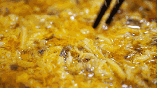 所以,禿黃油裏沒有蟹肉,在螃蟹豐收的季節,選最肥的公蟹與母蟹蒸熟,剔出蟹黃與蟹膏,加入熟透的肥膘末,用薑末、葱末爆炒,加入黃酒、高湯調味,淋入豬油、胡椒粉。