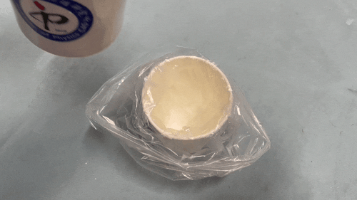 再次提拉塑料袋,可以發現此時仍然能將紙杯提起。