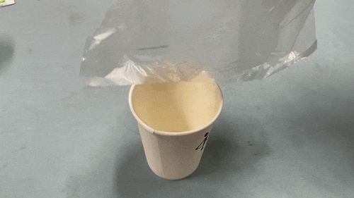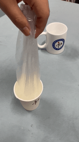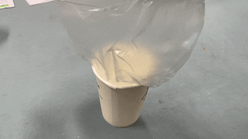 然後提拉塑料袋,發現紙杯不會被提起。(這不是廢話嗎