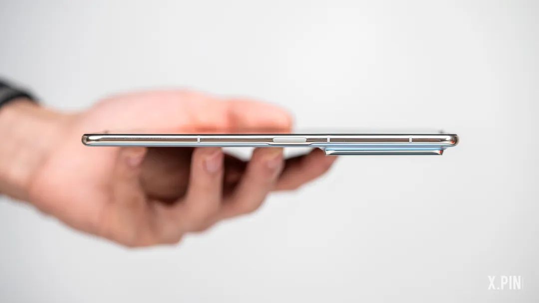但是,把摺疊屏做得這麼薄也是有點代價的,比如後面的鏡頭模組凸起比較明顯,還有這個面積小得可憐的側邊指紋。