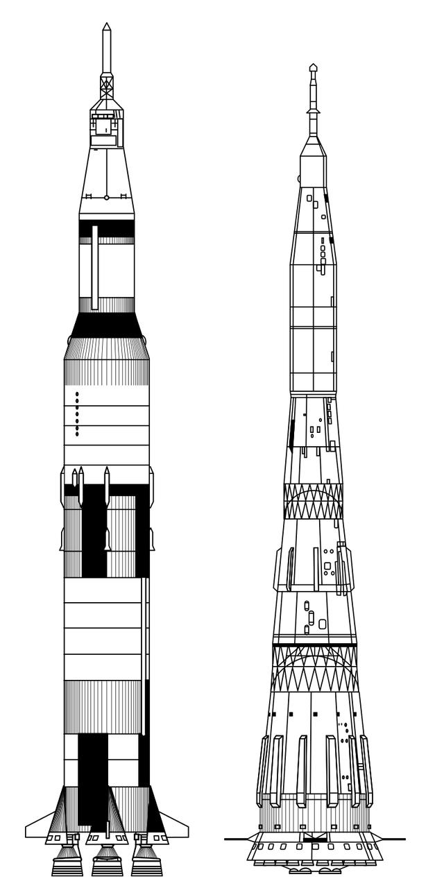 最後還有一點,稍微對比一下土五和N1,你就會發現雖然高度相差無幾,但土五是個直筒子,N1卻是個錐子,尤其是N1底部比土五還寬,這就是同時代同技術下,捆綁式噴口和大噴口之間的結構區別了