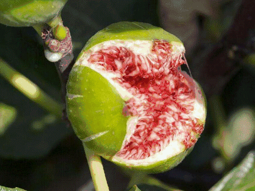 無花果只見果不見花,讓人們誤以為它們不開花就結果了。其實,無花果是桑科榕屬植物,其果樹雌雄異花,花隱藏於囊狀花托內,使得其外觀只見果不見花,故而得名。
