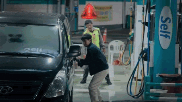 首先,他們就面臨了第一個難題,車子燃料不足,要去加油站加油。