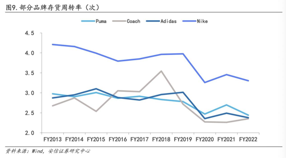 部分品牌存貨週轉率下降。圖片來源:安信證券研報