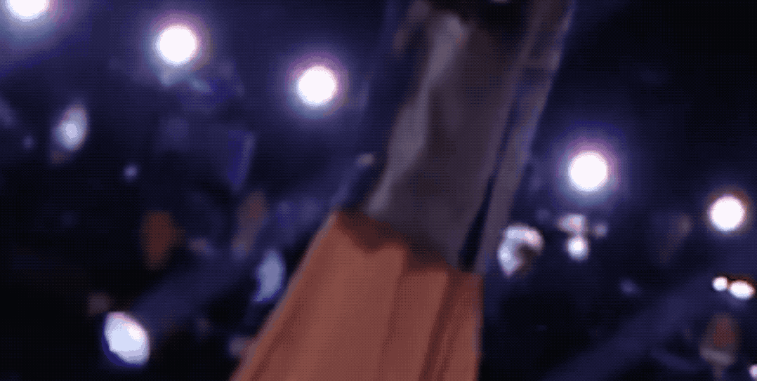將一剛開始的全身鏡頭放大,也能看見她的雙腿在抖動,在勉力支撐。