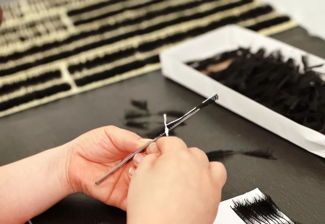 王國慶工廠流水線上生產的假睫毛