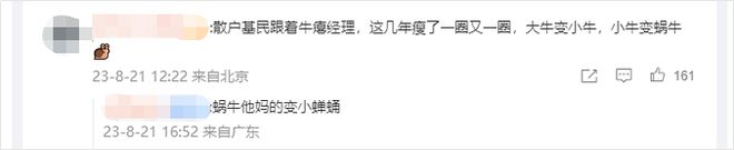 對此,有些投資者看樂了:散户基民跟着他,這幾年瘦了一圈又一圈,大牛變小牛,小牛變蝸牛,蝸牛變小蟬蛹。