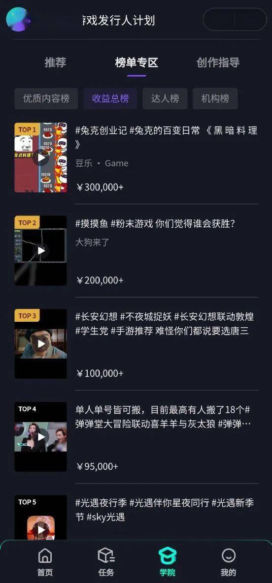 個人則可以參與“發行人計劃”,利用遊戲自帶的“分享給好友”和“錄屏分享”功能進行推廣,同時獲得收益;各種大V和網紅通過自己的短視頻為遊戲進行點對點的推廣,以CPS、CPC的形式進行分成;抖音還定期開展針對達人的遊戲推廣活動,推出直播推廣任務等……一個爆款視頻能夠為作者帶來近六位數的收益,屬實是一年不開張,開張吃一年。