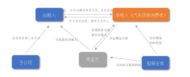該模式下,用户需要先後簽下兩個合同,分別是融資租賃合同和汽車金融借款合同。在與鑫合作金融機構所籤的借款抵押合同中,融資租賃合同中的承租人變成了借款人,所申請的貸款僅限於償還融資租賃全部租金款項。