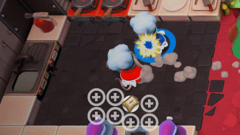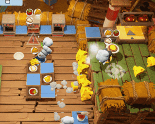 遊戲的玩法是多人合作,廚師們齊心協力處理食材原料,並完成遊戲要求的種種菜品。遊戲的特點是快節奏而造成的手忙腳亂,以及同伴或自己腦殼過載而產生的互相嫌棄與諒解。