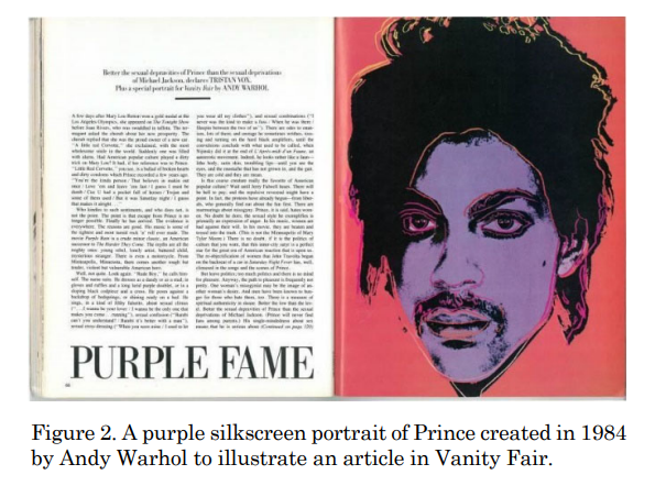 圖2 沃霍爾於1984年為《名利場》雜誌創作的紫色絲網印刷的普林斯肖像作品,來源:美國聯邦最高法院關於Goldsmith案的判決書,143 S. Ct. 1258 (2023)