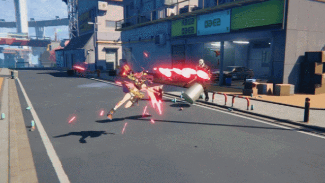小規模的場景破壞。角色的攻擊會對場景物體造成影響,在PV視頻中,屋頂的腳手架會被角色攻擊打散架,路障像布娃娃一樣被擊飛;馬路上的垃圾桶也可以被隨意錘飛;