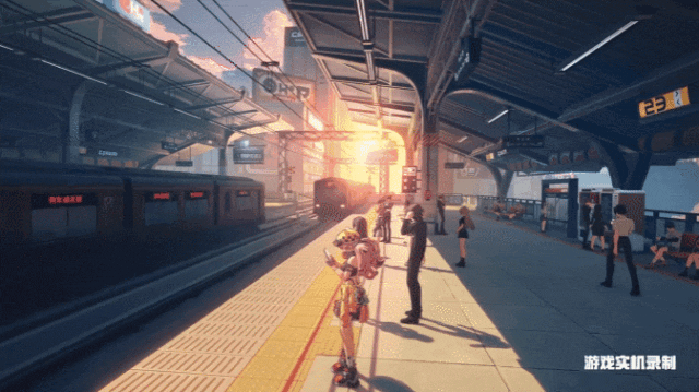 首先是交通工具。在都市中,《代號:無限大》有兩類交通工具,一種是角色駕駛汽車,在城市街道中行駛;另一種沒有明説,但在一個片段裏,角色正在等待城市的軌道列車,暗示了玩家可以藉助工具大範圍地快速跨越城市。