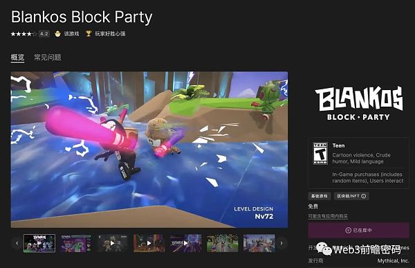 2022 年 9 月 16 日,Blankos Block Party 成了登陸 Epic Games 商城的第一款區塊鏈遊戲。
