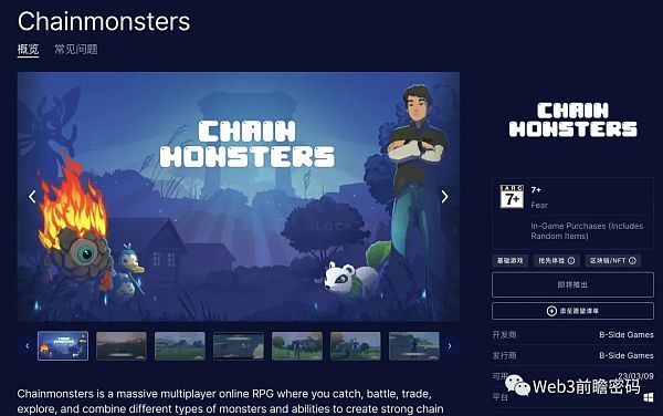 原計劃於 2023 年 3 月 6 日上線的 Chainmonsters,是鏈遊試圖進入傳統遊戲平台的最新嘗試。Chainmonster 是一款類寶可夢的多人在線遊戲,玩家可以使用被稱為 Chainmons 的寵物進行戰鬥,並以 NFT 形式收集和交易 Chainmons,區塊鏈服務基於 ImmutableX。