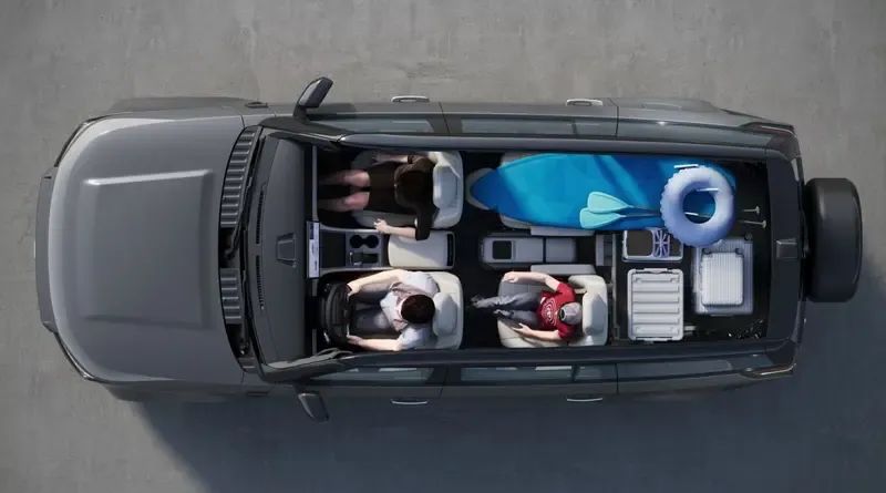 **放倒二三排座椅,可實現2mx1.3m的大牀模式。**官方還定製了海綿氣墊雙層舒適牀墊,露營也能擁有鬆軟的牀睡了。