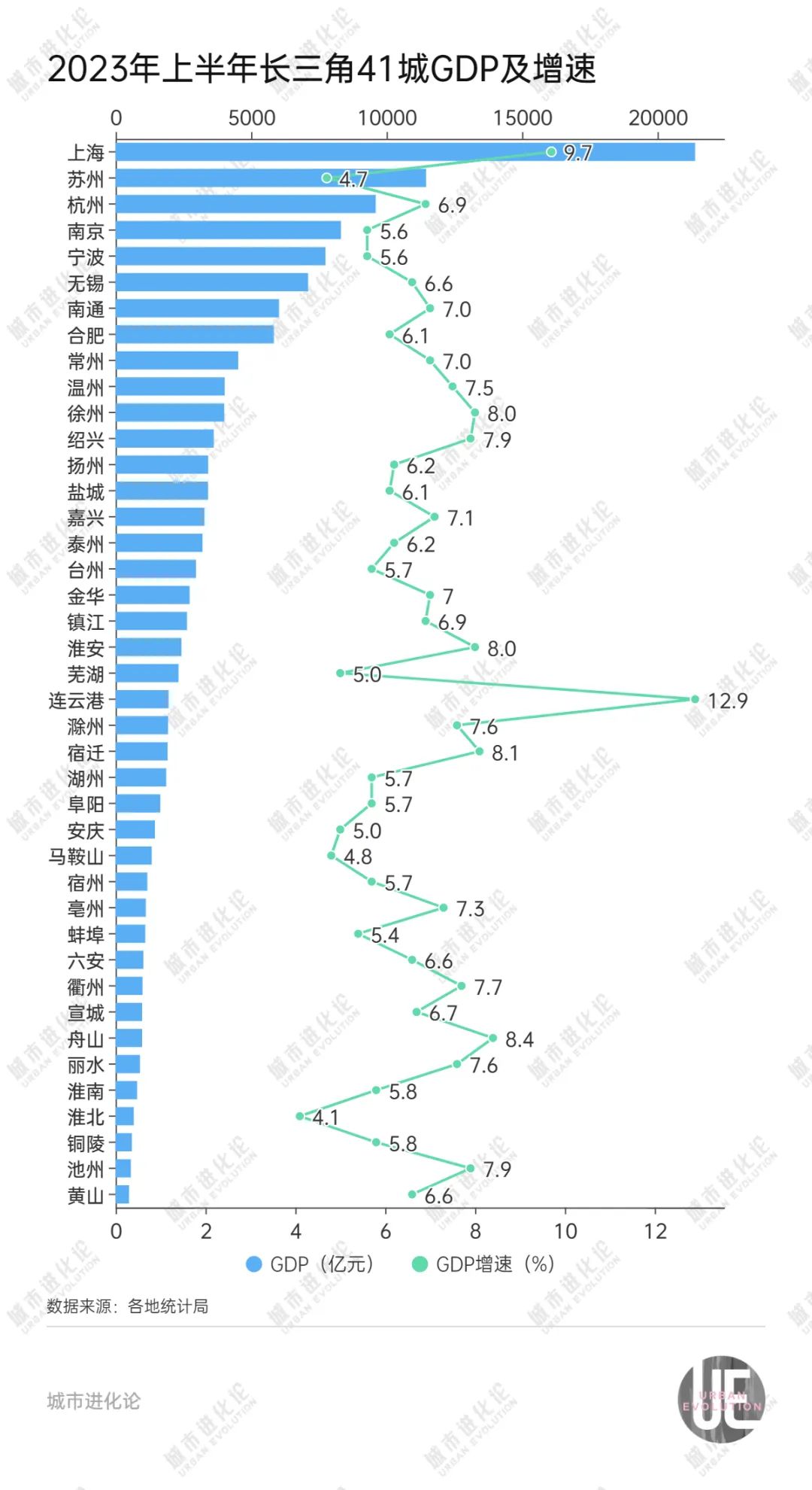 近日,長三角三省一市經濟半年報陸續出爐。41個地級及以上城市中,35城GDP增速跑贏5.5%的全國水平,其中,連雲港以12.9%的增速一騎絕塵,成為上半年跑出的一匹“黑馬”。