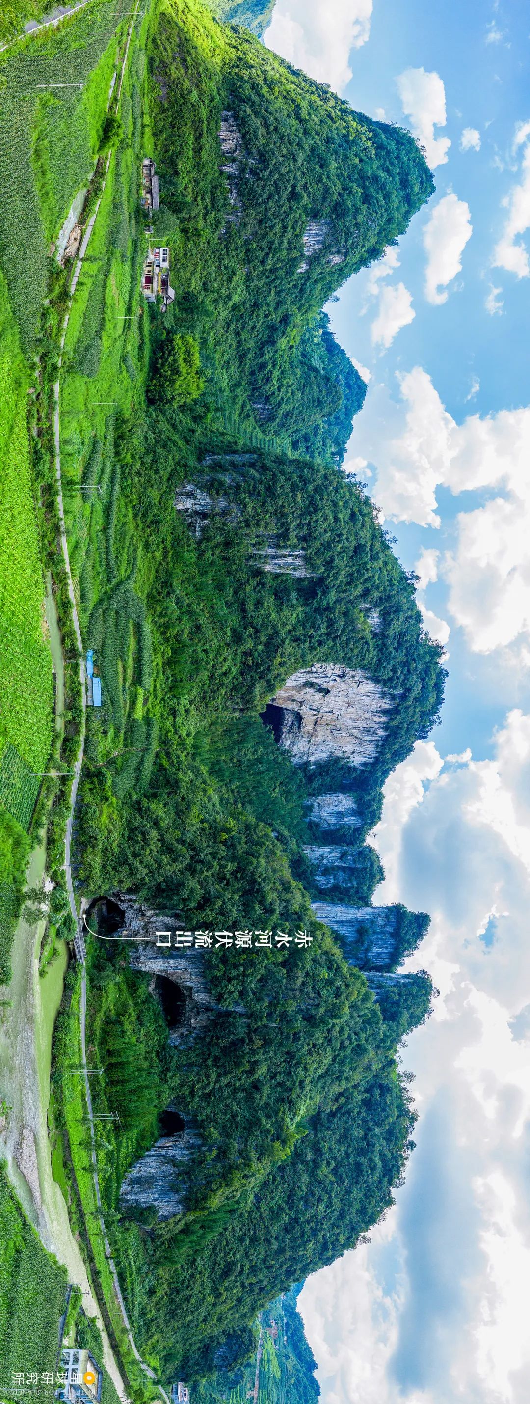 (請橫屏觀看,雲南鎮雄縣果珠鄉赤水河源第三伏流出水口,曾被認作河源,而真正的河源還在上游,攝影師@李東旭)