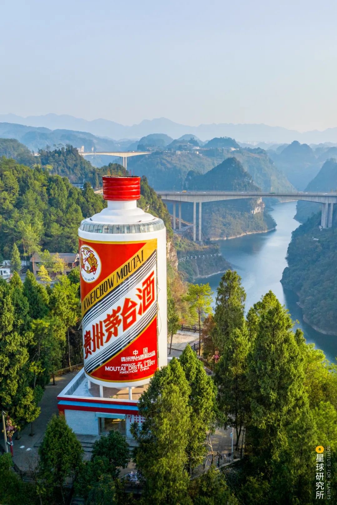 (請橫屏觀看,茅台“天下第一瓶”,背靠赤水河的支流,攝影師@陸宇堃)