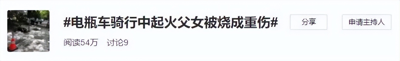 此前,也有監控拍到過,杭州一電動自行車在行駛過程中,鋰電池突然起火,車上一對父女被嚴重燒傷,場面令人揪心。