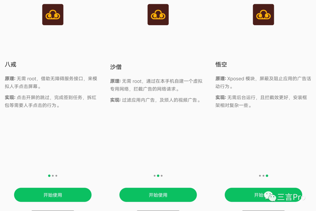 初次打開大聖淨化會有一個簡單介紹。該軟件有三種功能,分別被稱為“八戒”、“沙僧”和“悟空”。