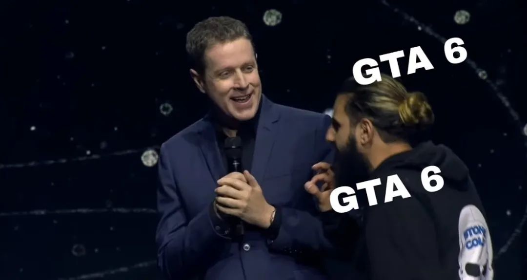 就在這時,一位不速之客亂入會場,打斷了傑夫的話,還想借着傑夫手中的麥克風放大他的聲音:“GTA6!GTA6!比爾•克林頓(Bill Clinton)想要玩GTA6!比爾•克林頓!比爾•克林頓!GTA6!我想要玩GTA6……”