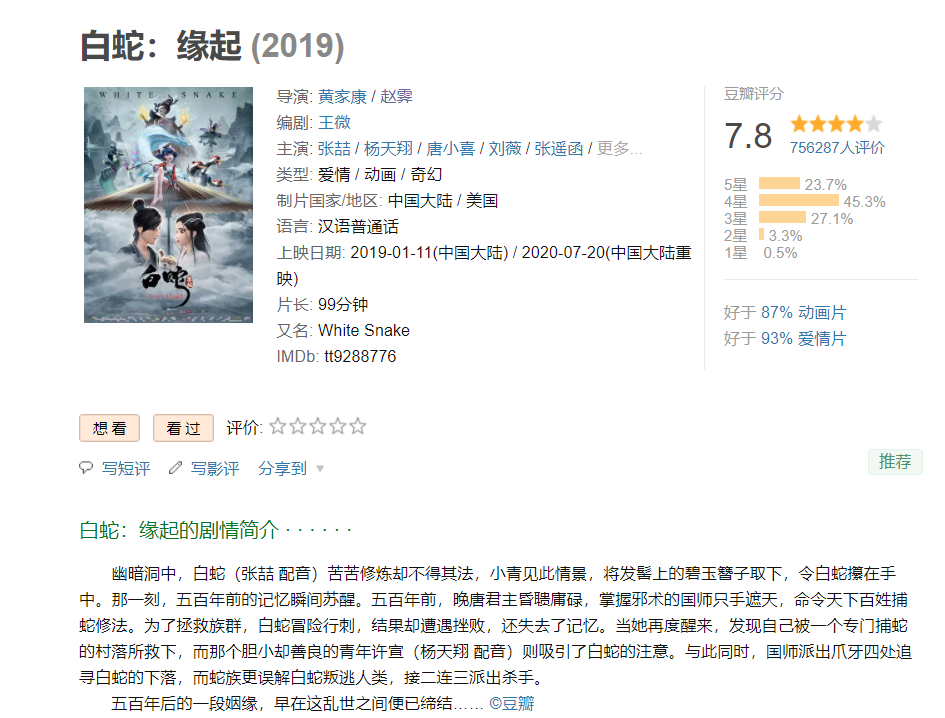 而在2019年,追光最初實現票房首度破億,率先出圈的《白蛇緣起》,看看劇情,又是熟悉的500年前,500年後,失憶,還是失憶…..