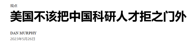 不僅如此,《紐約時報》在2023年5月刊登了一篇報道,題目叫做《美國不該把中國科研人才拒之門外》,呼籲美國政府不要限制與中國科研人才的合作,“在沒有明確的國家安全擔憂情況下阻止國際合作,我們就限制了潛在合作者的範圍,從而可能削弱研究。對於已經成為科學強國的中國來説,尤其如此”。