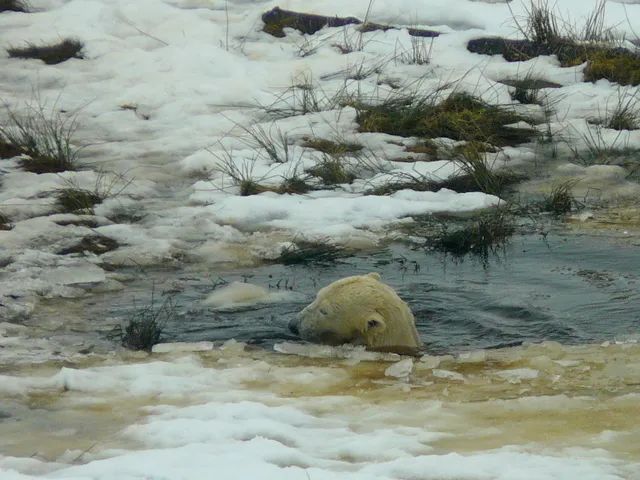 高地動物園的北極熊在天然的冰水池裏泡澡,一個動物園要飼養什麼動物,能夠養好什麼動物,必須考慮它自身所在的地理大環境 ©sylvia duckworth / wikimedia