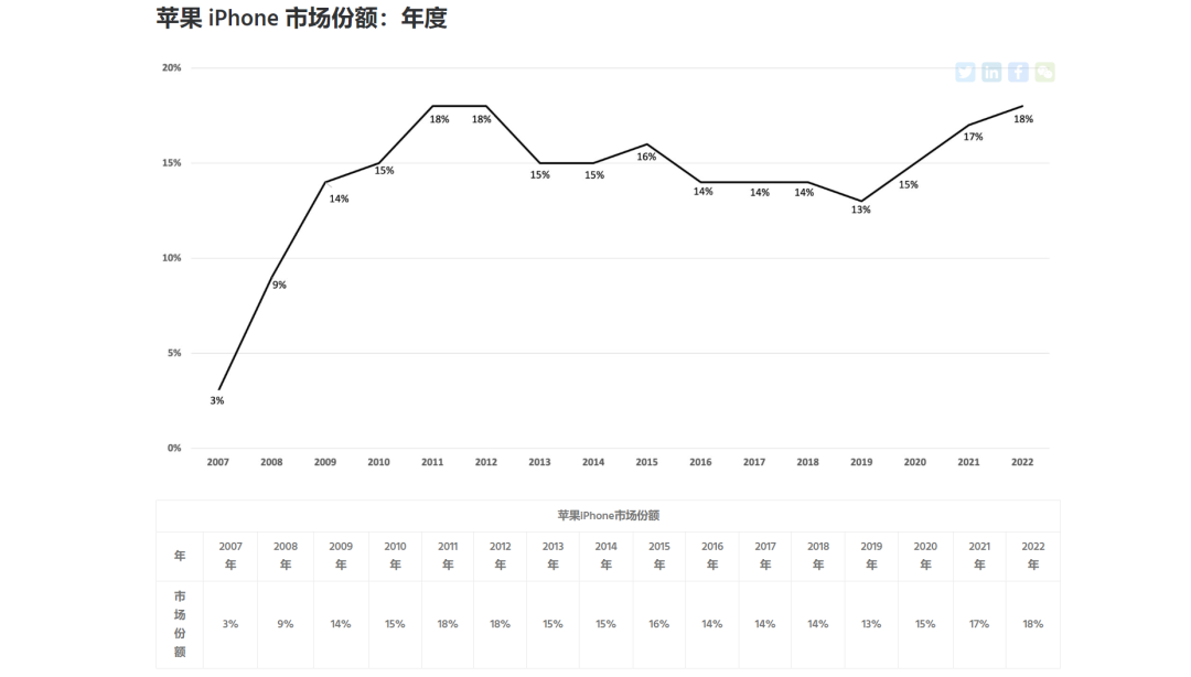 在三星、蘋果、小米、OPPO、vivo 這些銷量前五名的品牌中,就屬蘋果出貨量同比降幅最小,今年第二季度蘋果市場份額還創下了歷史新高。