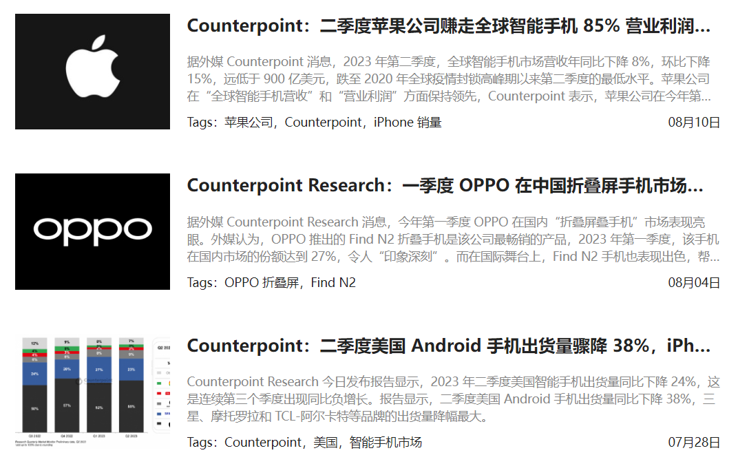 其中在數碼領域,Counterpoint Research 絕對算得上是被提及次數最多的市場調研機構之一,基本每隔一段時間,它就會發布一些行業報告。