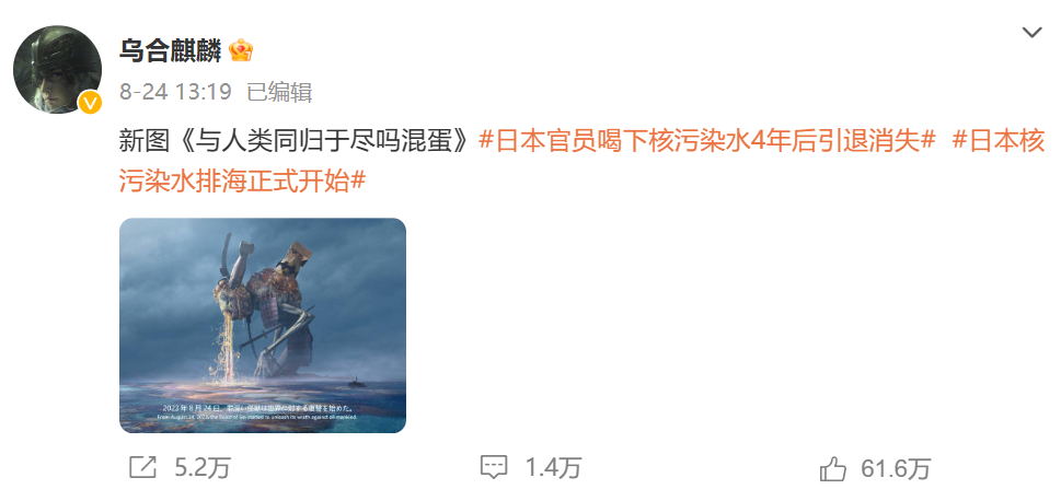 最近,微博上鬧得最沸沸揚揚的是什麼事?想必大家都會一致認同日本排放核污水。