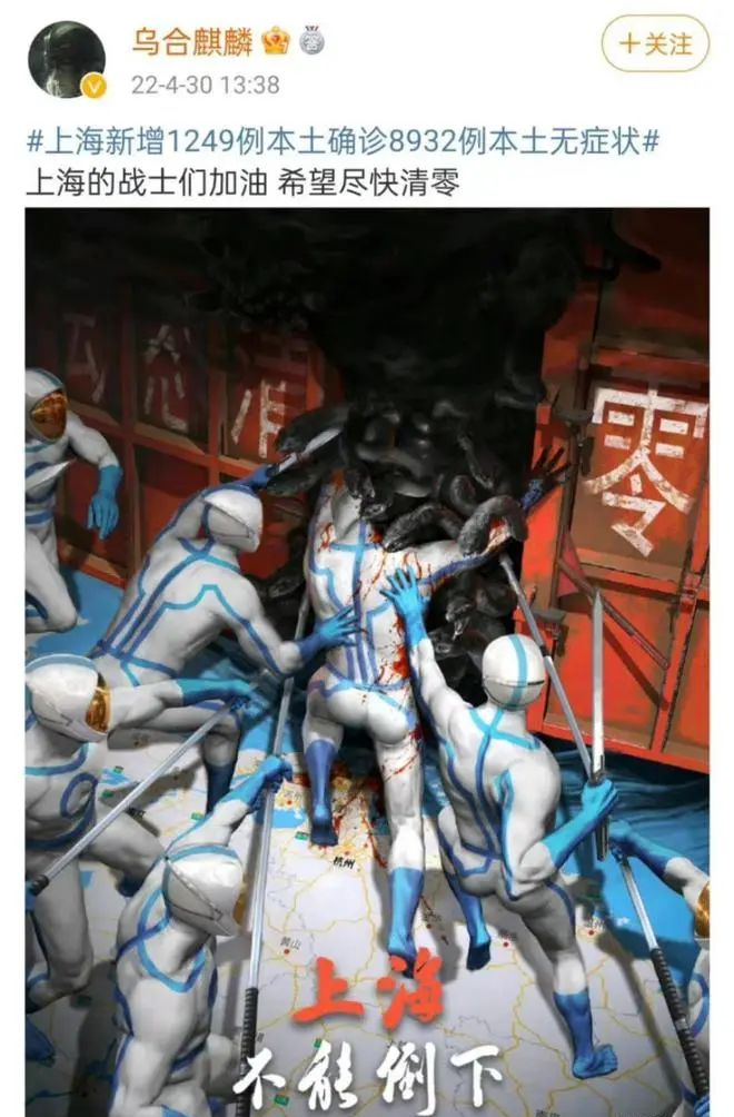 烏合麒麟火起來,確實靠着時政畫作,從2019年以來,先後創作國內外爆款傳播作品《偽神》《敬呼吸》《和平之師》《致莫里森》《血棉行動》《神明改造》《G7》《島》《海》等,數十次被人民日報、新華社、中央廣播電視總枱等國內重要媒體轉載、發佈。