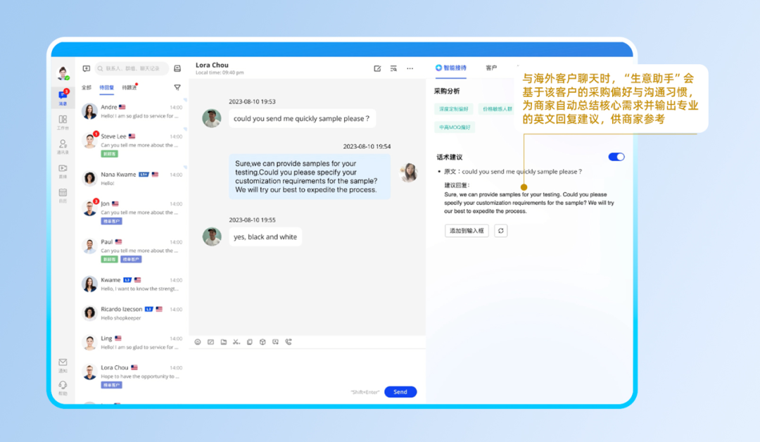 如果我們最後成功吸引到了客户,對方希望跟我們進一步溝通,也完全不用擔心語言問題。