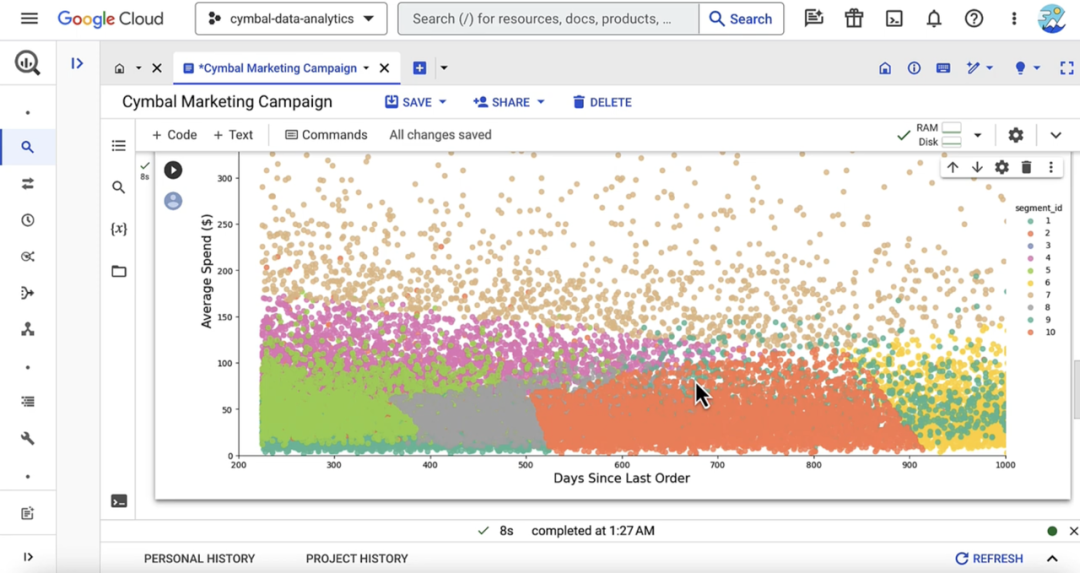 在數據分析領域,BigQuery 中的 Duet AI 為編寫 SQL 查詢和 Python 代碼提供上下文幫助,生成完整的函數和代碼塊,幫助用户分析和可視化數據,並以自然語言解釋 SQL 語句,並可以根據模式和元數據生成建議。