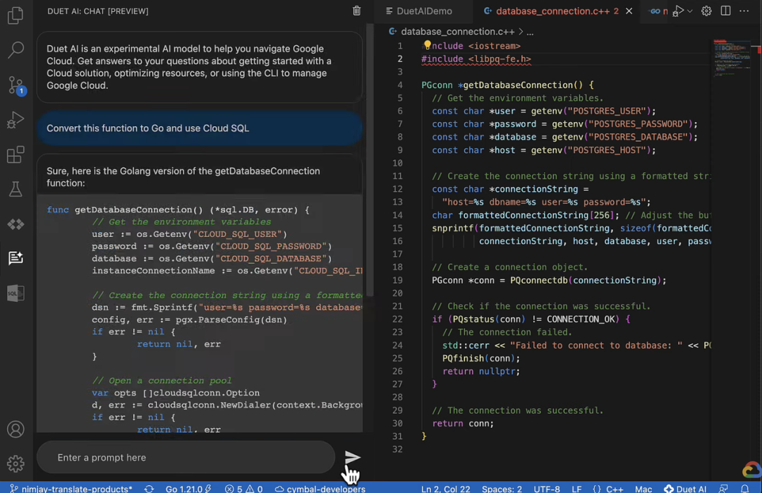 Duet AI 通過自然語言提示重構代碼 |谷歌雲