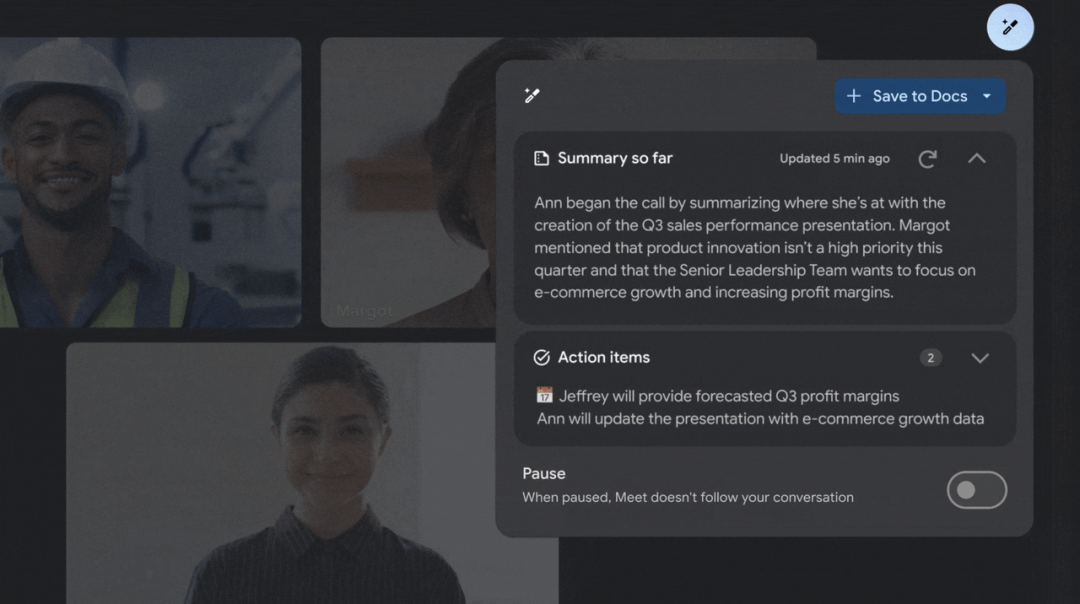 Google Meet 中的 Duet AI 生成會議摘要|谷歌雲