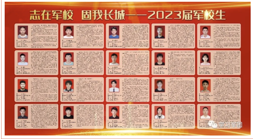 人們注意到,與普遍做法不同的是,在學校官網以及校園裏公佈的高考錄取榜上,考取軍校的學生名單總排在最前面的位置,他們所佔的宣傳版面也更大、更突出。教學樓前的築夢廣場、校園內的宣傳欄,從軍校簡介到招生計劃,從報考軍校的十大理由到往屆畢業生軍校錄取情況,處處充滿“軍味”。